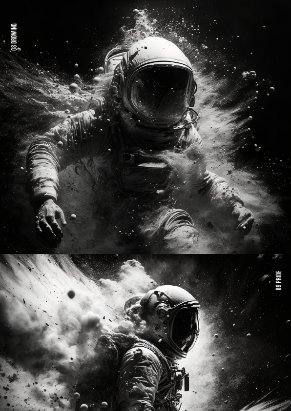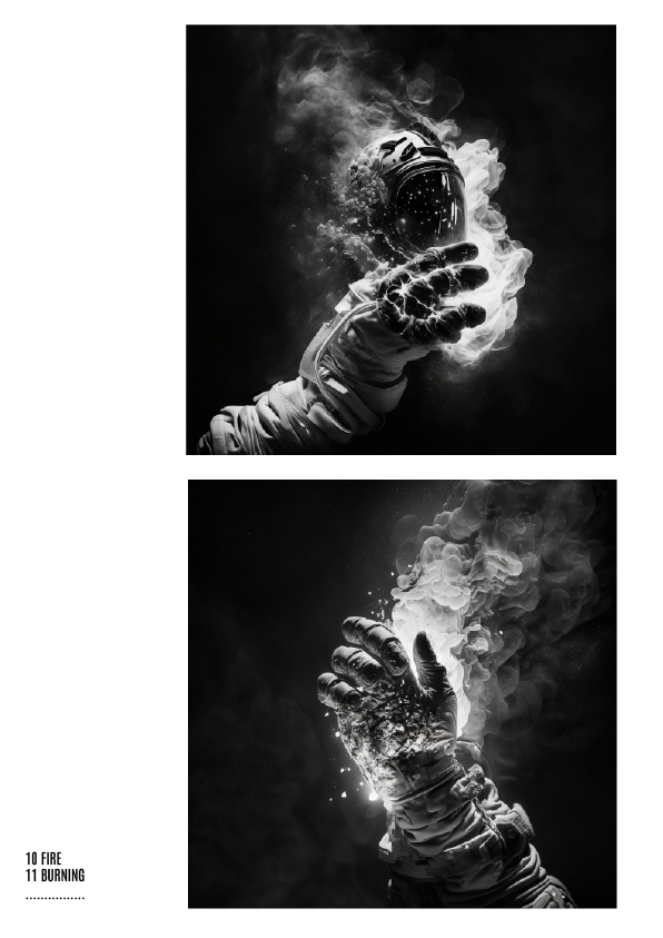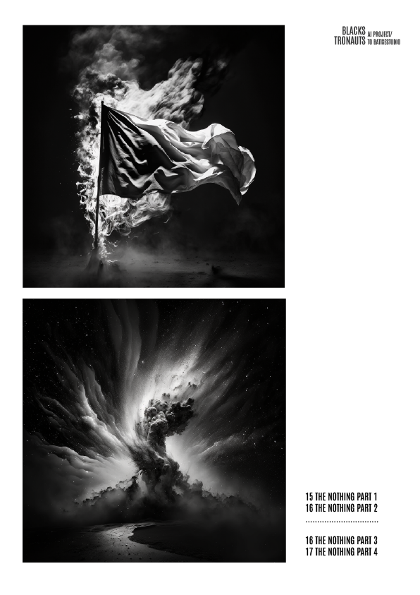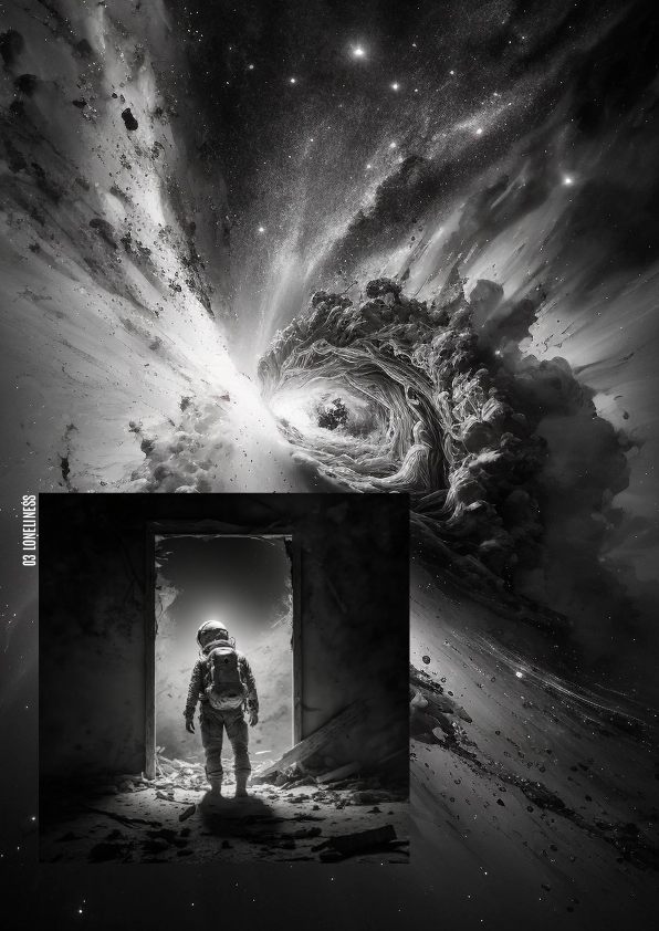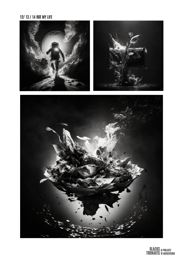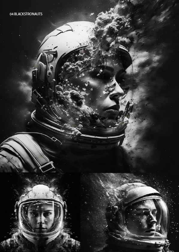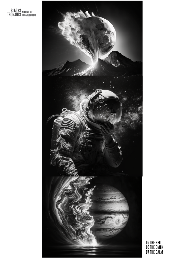 Blackstronauts es un proyecto editorial generado a través de inteligencia artificial. Cogiendo la figura de un astronauta como elemento central del relato se generar un storytelling sobre el crecimiento personal, la soledad y el final como parte de la vida.